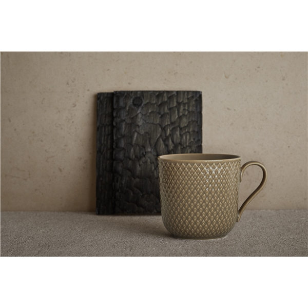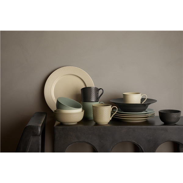 Et jordnært og nærværende udtryk på bordet og i hånden. Med en farvepalet i fire elegante jordfarver inviterer Rhombe Earth os til at sænke farten, være til stede ved måltidet, med dem vi spiser med, og lægge mærke til skønheden i servicen, vi spiser og drikker af. Seriensen krus på 39 cl er perfekte til en stor kop kaffe, te eller varm chokolade og fås udover grågrønne Moss også i de tre andre Rhombe Earth-farver – Marble, Clay og Slate. De er afdæmpede jordfarver, der fremhæver Rhombe-servisens ikoniske reliefmønster på en ny og anderledes måde og inviterer os til at gå et skridt dybere og give opmærksomhed til din drik i kruset og maden på tallerkenen, til sanserne og til samtalen med de andre omkring bordet. Alle fire smukke nuancer i Rhombe Earth-serien er, ligesom i Lyngby Porcelæns populære Rhombe Color-serie, nøje udvalgt af designduoen Stilleben, som består af Ditte Reckweg og Jelena Schou Nordentoft. Brug de forskellige Rhombe Earth-dele sammen i din borddækning og lad de forskellige størrelser på tallerkenerne kigge frem under hinanden, så de varme farver kan tale med hinanden. Tallerkenerne, krusene og skålene i Rhombe Earth er naturligvis også perfekte både sammen og hver for sig som et supplement til din Rhombe Color-samling eller i kombination med det klassiske hvide Rhombe-service, hvor de grå og brune nuancer på Rhombe Earth-delene sammen med Lyngby Porcelæns linjer skaber et moderne og afslappet udtryk og står smukt mod det hvide porcelæn.