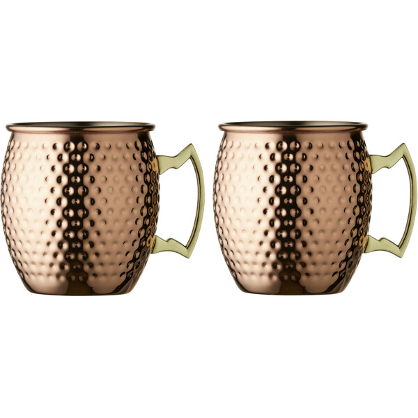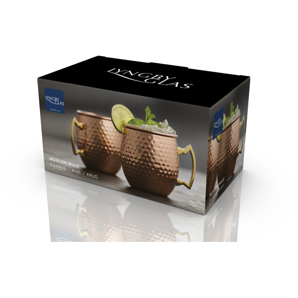 Det smukke krus med hank og kobberbelagt, hamret ydre er det klassiske og karakteristiske krus til den populære cocktail moscow mule, som har fået et moderne comeback. Moscow mule laves enkelt af ginger beer, vodka, limesaft og rigeligt med isterninger, så drikken forbliver iskold. Kruset er meget let og rummer 55 cl.