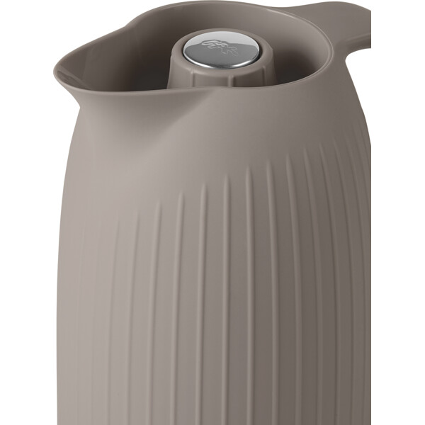 Denne stilfulde og funktionelle Hammershøi-termokande fra Kähler har en fin silkemat overflade med de ikoniske Hammershøi-riller. Det bløde integrerede håndtag gør termokanden utroligt behagelig at holde på. Indeni har kanden en glasindsats, som holder på varmen mens en skruknop sikrer, at kanden lukker tæt. Termokanden har også en indbygget trykknapfunktion, som gør den enkel og sikker at hælde fra. Denne termokande fuldender din kaffepause både indendørs og ude i haven eller på terrassen. Fås i flere farver.