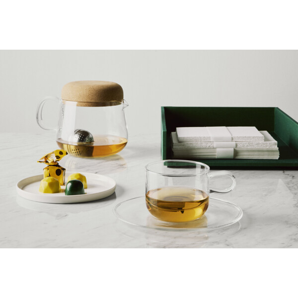 Viva fra Kosta Boda er en alsidig serie med uformelle glas og drikketilbehør til daglig social brug. Tekanden med korklåg og tesi får dig til at længes efter en afslappende stund med dit valg af te, men du kan også bruge den til enhver varm drik. Design af Matti Klenell.