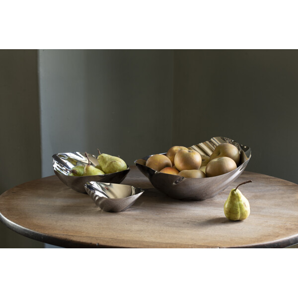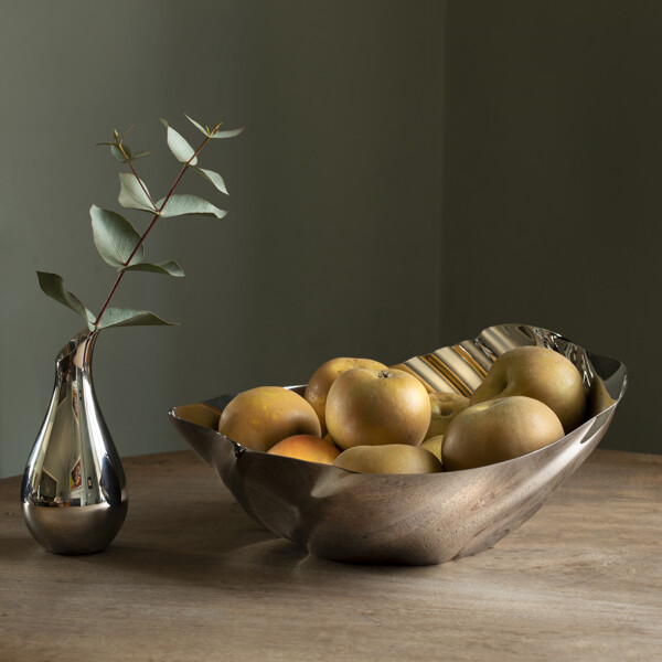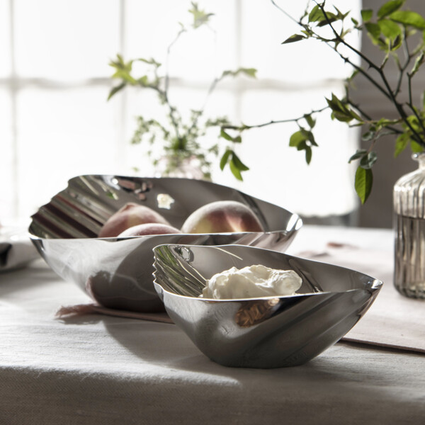 Robert Welch Cascade-skåle er inspireret af naturens bevægelser. Den flydende, snoede form leder tankerne hen på vandfaldets bølgemønstre, vindens skulpturerede sandklitter eller store muslingeskaller. Den spejlpolerede overflade fremhæver skålenes skulpturelle karakter og lader dem fange og reflektere både lys og farver på en unik måde. Fås i forskellige størrelser.