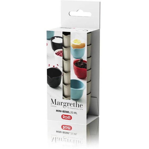 Mål: 5,2 x 4,5 x 3,5 cm. Miniskålen er støbt i ABS-plast, stabelbar og tåler opvaskemaskine og fryser. 5 års garanti.