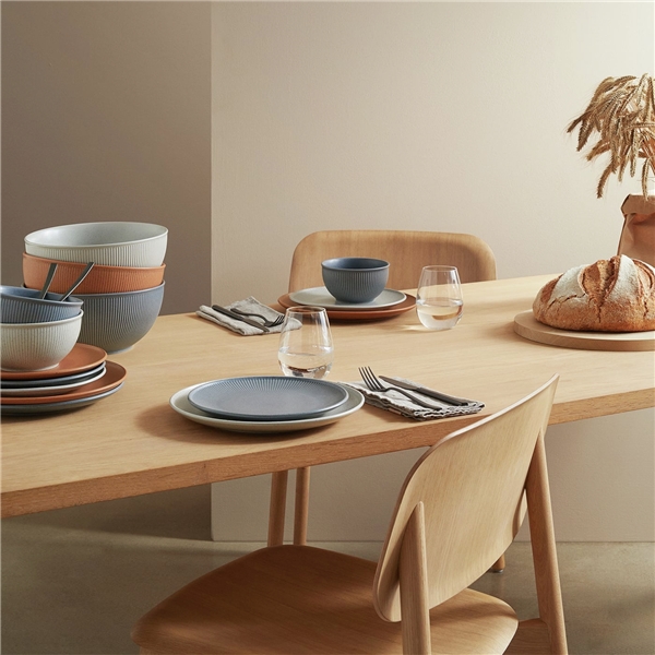 Thomas Clay Skål 15 cm fra Rosenthal er en skål i stentøj med et plisseret mønster, der løber fra oversiden til midten af skålen. Fås i flere farver. Skålen passer både til supper, desserter og som morgenmadsskål. Serien består af forskellige dele, der passer sammen, og som med fordel kan kombineres med andre farver.