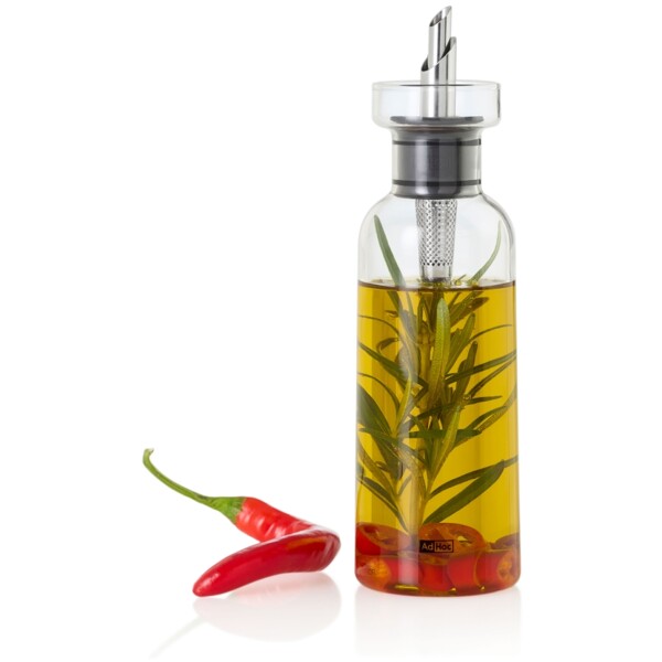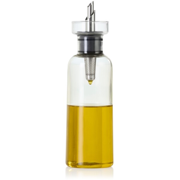 Flaske til den fineste olivenolie, smagfuld græskarkerneolie, den fineste eddike og meget mere. 4-i-1 - Tud, drypfanger, automatisk lukning og filter i rustfrit stål. Flasken er fremstillet af helt smagsfrit borosilikatglas. Let at åbne og fylde takket være det store påfyldningshul.