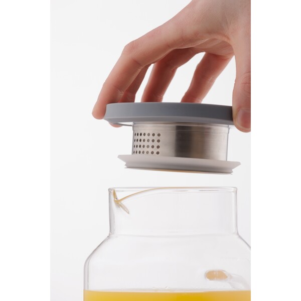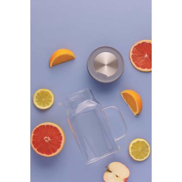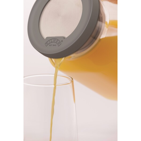 Vi præsenterer Kilner 1,2 liters firkantet køleskabskande i glas, den perfekte kombination af praktiske egenskaber og elegance. Denne borosilikatkande er designet med et låg i rustfrit stål med silikonekant for et sikkert greb og sikrer nem hældning. Det innovative låg tilbyder et dobbelt hældesystem – et for maksimalt flow og et andet med et filter til infusion. Derudover kan låget drejes til en lukket position for at forhindre spild og bevare friskheden, hvilket gør det til et alsidigt og elegant supplement til ethvert køkken.