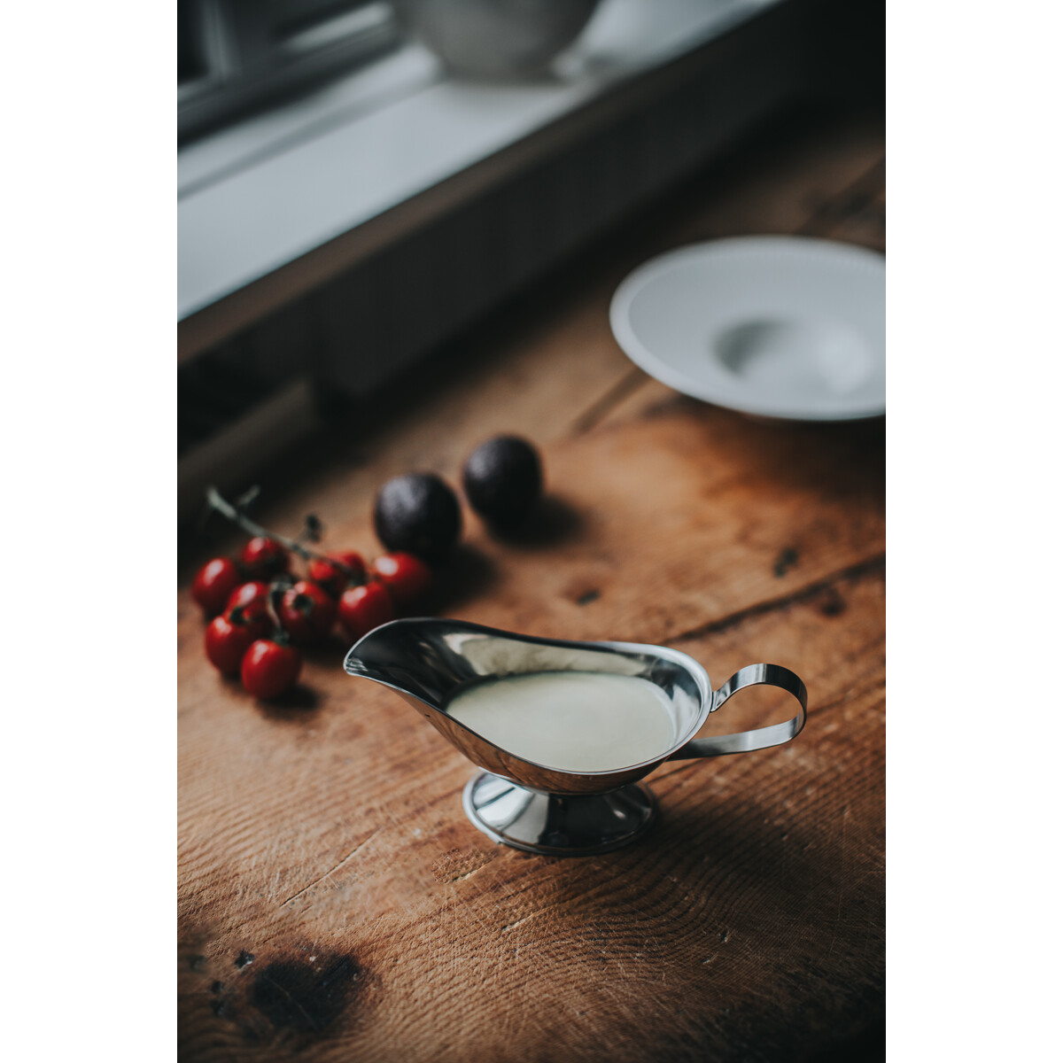 Saumi sauceskål i rustfrit stål rummer 25 cl og giver en ren, kontrolleret servering af saucer og delikate smage. Den stabile konstruktion kombineres med en slank tud, der reducerer spild. En stilren detalje, der passer både til hverdagsmiddage og weekendens finere retter.