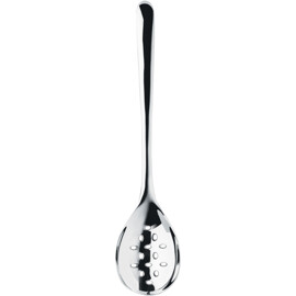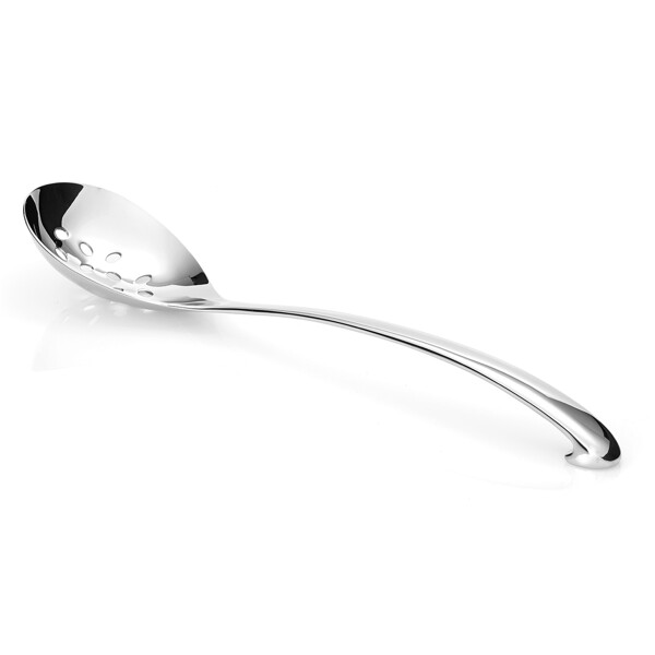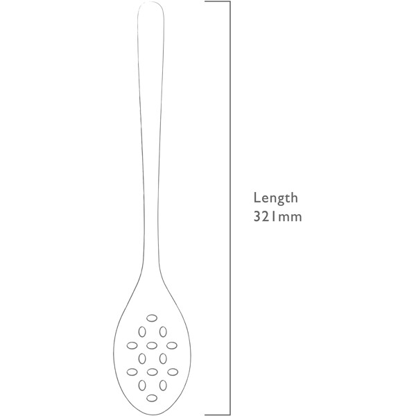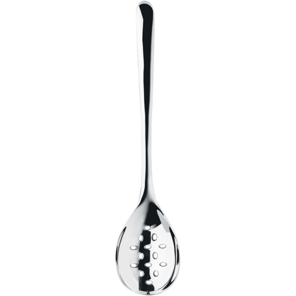 En praktisk hullet serveringsske i rustfrit stål i den prisbelønnede serie Signature fra Robert Welch. Alle redskaber i serien Signature har et ellipseformet håndtag, der giver et behageligt greb i hånden. Yderst på håndtaget er der en krog, der gør det nemt og elegant at hænge redskaberne op på Signature Redskabslisten.