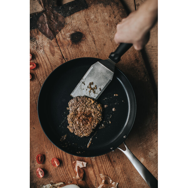 En stegepande til dig, der stiller høje krav til både ydeevne og holdbarhed. Denne pande har en slidstærk KFCC keramisk belægning (gen 8), der giver en naturlig non-stick-overflade uden PFAS, perfekt til sund madlavning med lidt eller ingen fedt. Fremstillet i 3,5 mm aluminium med en robust 0,5 mm rustfri bundplade (SS430) for jævn varmefordeling på alle typer komfurer, inklusive induktion. Ydersiden er behandlet med hårdanodiseret højtemperaturbelægning for ekstra modstandsdygtighed og holdbarhed.