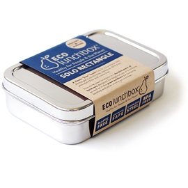 Madkasse Solo Rectangle fra ECOlunchbox i rustfrit stål. En stor og rummelig madkasse med plads til hele 850 ml. Perfekt til for eksempel et stort stykke lasagne eller en salat. Både låget og bunden er fremstillet af rustfrit stål der er helt fri for phthalater, BPA og andre hormonforstyrrende stoffer. Tåler opvaskemaskine. Madkassen er ikke 100% lækagesikker og bør derfor ikke bruges til at opbevare flydende ting. Madkassen kan med fordel placeres i en ovn eller over et stormkøkken for at opvarme maden, men vær i så fald opmærksom på at den bliver varm så du ikke brænder dig.