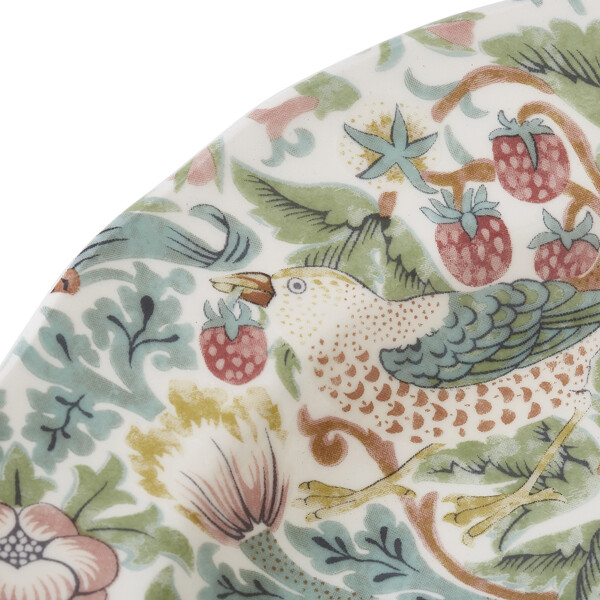 Tallerkenen er prydet med et fint mønster hentet direkte fra William Morris & Co.'s arkiv og præsenteret i smukke nuancer. Den bløde farveskala og det gennemgående mønster tilbyder en frisk maksimalistisk stil til dit bord.
