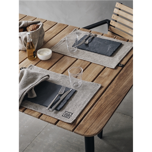 Design: Juna Juna er en dansk virksomhed, der siden 1972 har skabt design med stærke skandinaviske rødder. Juna skaber sine egne mønstre og producerer tekstiler fra udvalgte leverandører af økologisk bomuld, der er ren, frisk og naturlig. I dette firma er man overbevist om at naturen er den bedste designer når det handler om håndklæder. For Juna er holdbarhed et nøgleord, og virksomheden stræber efter at beskytte og tage ansvar for miljøet. Håndklæderne fremstilles af garn, der opfylder strenge miljømæssige krav, som er formuleret via den internationalt anerkendte miljøcertificering GOTS. Designet påvirker følelserne og emmer af ærlige værdier og en følelse af poesi.Her får du 2 stk. fine dækkeservietter. Dækkeservietterne fra serien RÅ er skabt i samarbejde mellem designfirmaet Juna og Jesper Vollmer og Anette Heick. De to sidstnævnte driver en kombineret restaurant og gårdbutik på Bornholm, og i samarbejde med Juna har de nu skabt et unikt sortiment af køkkentekstiler i 100% bomuld med mange lækre detaljer. De mørkegrå dækkeservietter måler 50 x 35 cm og kan vaskes i vaskemaskine ved 40 °C.Størrelse: bredde: 50 cm, højde: 35 cmMateriale: 100% bomuld, vævet. Læder. Metalnitter.
