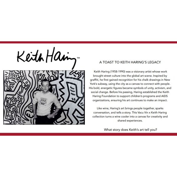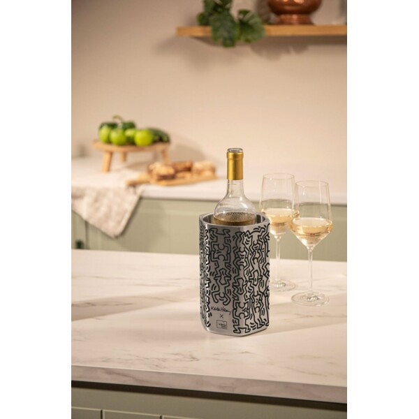 Hold din vin kølig med stil med denne iøjnefaldende køler, fremstillet af førsteklasses rustfrit stål og med ikoniske Keith Haring-kunstværker. Premiumkvalitet: Fremstillet af høj kvalitet rustfrit stål (304 - 18/8) med dobbeltvægget isolering for langvarig ydeevne. Universel pasform: Passer til de fleste størrelser af vin- og champagneflasker, inklusive 1,5L flasker (maksimal diameter 108 mm). Ikoniske Keith Haring-kunstværker: Et must for vin- og kunstelskere. © Keith Harings fond. Licenseret af Artestar, New York.