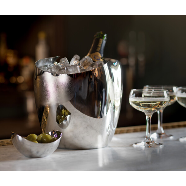 Elegant køler til vin og bobler i 18/10 rustfrit stål med en kapacitet på 13,5 L. Passer perfekt til buffeter og cocktails. Den er også ideel til at bruge som punchskål, da den holder punchen kold i lang tid. Der findes også et stativ til køleren, som giver dig ekstra plads ved middagsbordet.