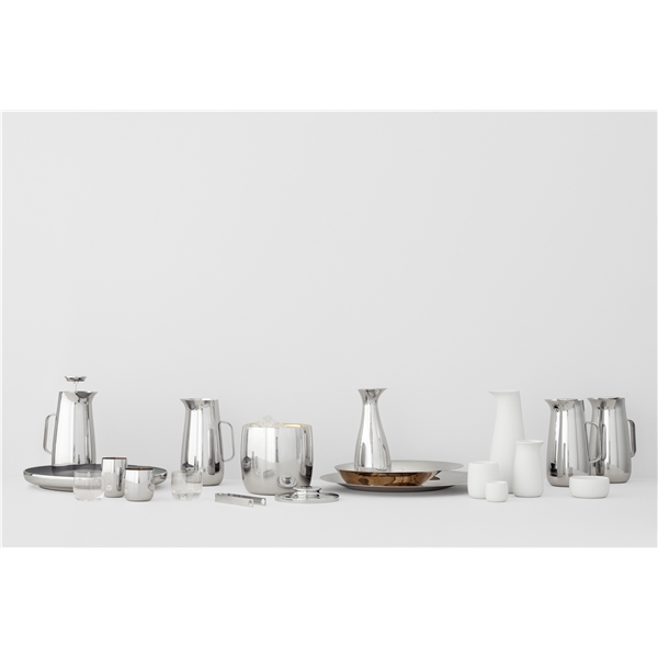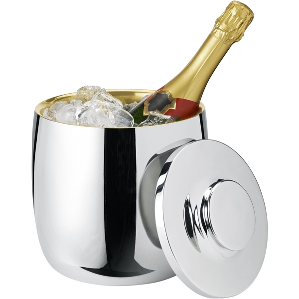 Steltons smukke Foster-kollektion er designet af den verdensberømte britiske arkitekt Lord Norman Foster. Kollektionen forener en enkel og skulpturel form med bløde linjer, som skaber et elegant serveringsstel til forskellige sammenhænge. Foster-seriens champagnekøler og isspand har en smuk spejlblank overflade og gyldne detaljer, som kendetegner flere af de andre produkter i serien, og som navnet antyder har den to funktioner. Med en volumen på 3 liter kan den rumme nok isterninger til en vidunderligt lang fest. Samtidig indebærer konstruktionen med dobbelte vægge at isspanden holder på kulden i længere tid og at der dannes mindre kondens på ydersiden. Foster-seriens champagnekøler og isspand leveres inklusive en istang som kan sættes fast i låget, så den altid er lige ved hånden.