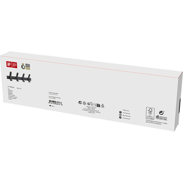 A-Rack er den perfekte løsning for perfektionisten, der hænger sig i detaljer. Her er der ingen synlige skruer, der forstyrrer følsomme øjne. Krogenes skruer er skjult bag de aftagelige kroge, som let klikkes på plads, når krogen er monteret.