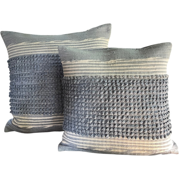 Tilføj et strejf af afslappet stil og unik tekstur til dit hjem med vores charmerende, håndlavede pudebetræk fra Thailand. Med et herligt denimstribet mønster giver dette betræk en afslappet men alligevel elegant følelse og hyggelig komfort til enhver sofa, lænestol eller seng. Fås i 2 størrelser. Størrelse: 50 x 50 cm Materiale: 100% håndvævet bomuld. Design: Stilfuldt denimstribet mønster med en tekstureret, håndlavet følelse. Håndlavet Kvalitet: Hvert betræk er unikt designet og viser ægte håndværkssnilde og subtile variationer, der bidrager til dets karakter. Alsidig Dekoration: Perfekt til moderne, kystnære, landlige eller eklektiske interiører.