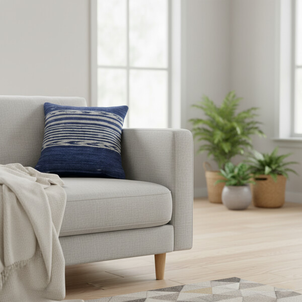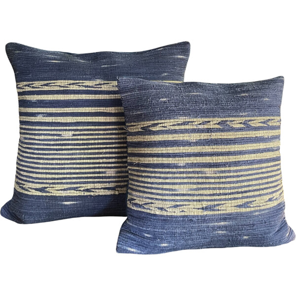 Design: Distinkt indigofarve med detaljerede flettede striber for et rigt, tekstureret udseende. Håndlavet Kvalitet: Hvert betræk er omhyggeligt fremstillet og viser unikke variationer og ægte håndværk, hvilket sikrer, at dit eksemplar er virkelig unikt. Alsidig Indretning: Perfekt til boheme, kystnære, rustikke eller moderne interiører og forbedrer nemt dit hjems æstetik.
