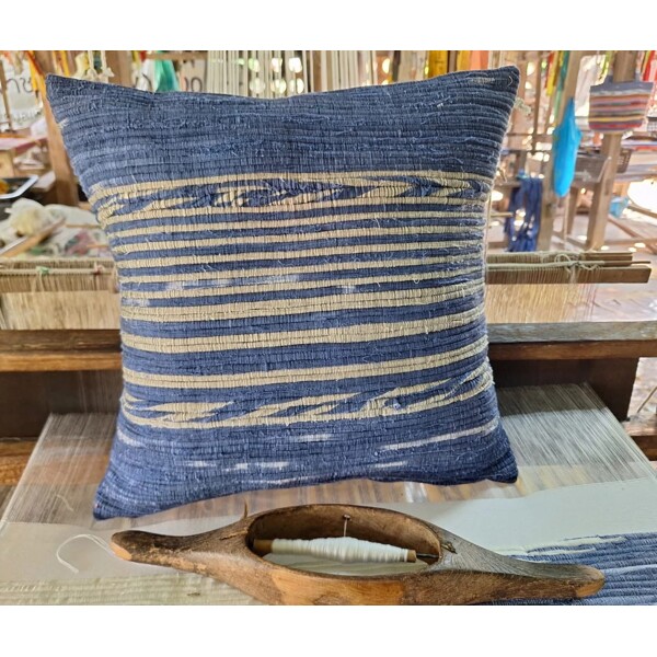 Tilføj charme og unik tekstur til din stue med vores udsøgte håndlavede pudebetræk fra Thailand. Med smukke indigotoner og indviklede flettede striber giver dette pudebetræk et kunstnerisk præg og hyggelig varme til enhver sofa, lænestol eller seng. Fås i 2 størrelser.