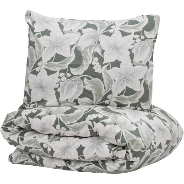 Sengetøj med storblomstret mønster i bløde gråtoner, perfekt til soveværelset. Lavet af bomuldssatin, som giver en luksuriøs følelse mod huden.