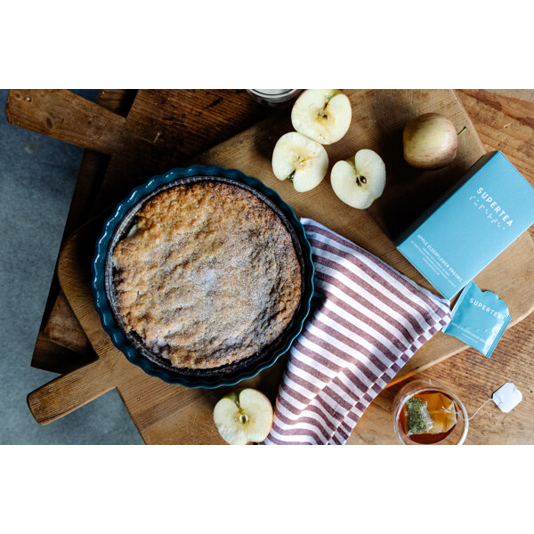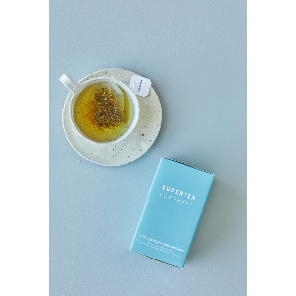 Apple elderflower er forfriskende og lavet med økologisk grøn te kombineret med lækker citrongræs og lakridsekstrakt. Naturlig hyldeblomst komplementerer blandingen og giver en unik smag.