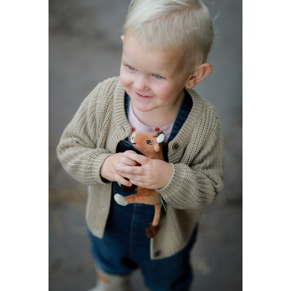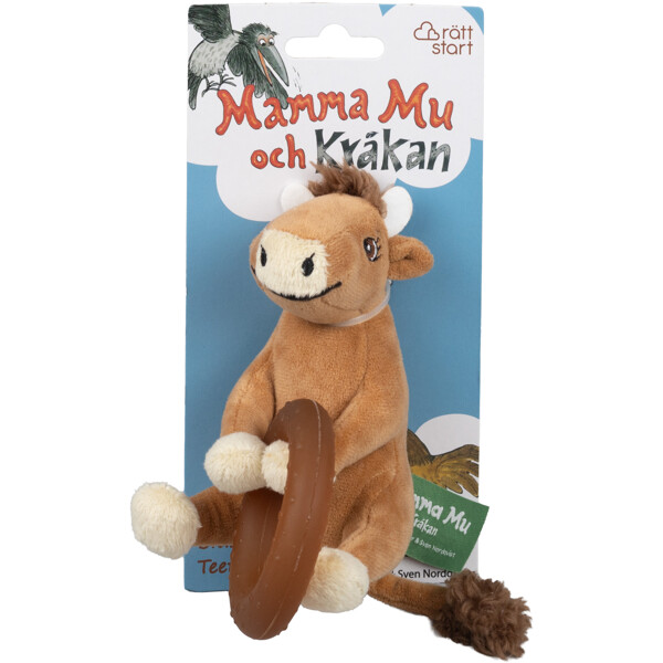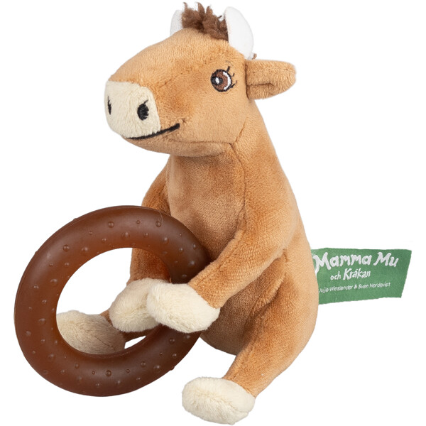 Blød Mamma Mu, der hurtigt bliver en favorit hos de små. Den indbyggede ring af naturgummi gør den nem at holde for små hænder - og perfekt at tygge på, når tænderne er på vej.