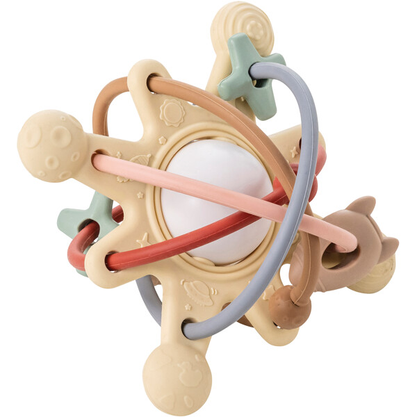 Bidelegetøj Galaxy giver en masse legeglæde til din baby og lindrer også ubehag ved tandfrembrud. Det søde design med stjerner og planeter opmuntrer din baby til at udforske, bide og sutte på de mange detaljer og strukturer. I midten er der en sol med rangle. Den gennemtænkte form er perfekt tilpasset små hænder og fremmer udviklingen af din babys griberefleks og finmotorik.Bidvenligt blødt legetøj med rangleFremmer finmotorikkenDesignet til små hænderBPA-fri silikoneRengør med sæbe og vandStørrelse: 12 x 12 x 9 cm