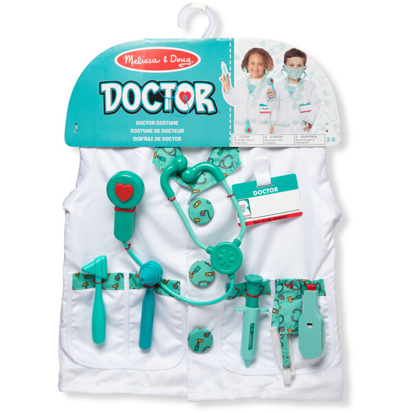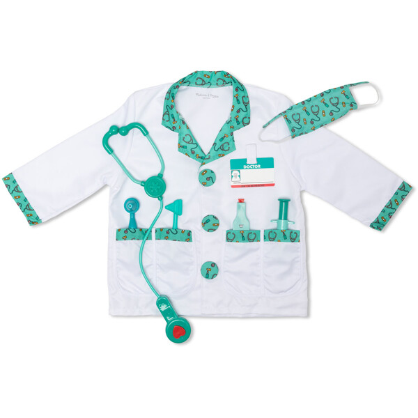Dette rollespilsdragt forvandler dit barn til en læge, der er klar til at tage sig af patienter.