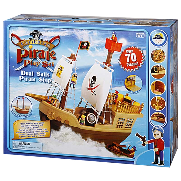 Caribbean Pirate Play Set er et super sjovt legesæt med et sejt piratskib! På dette skib hærger piraterne frit, og de er klar til eventyr på de syv have! Sammen med skibet får du over 70 dele såsom piratfigurer, kanoner, sværd og skatte!