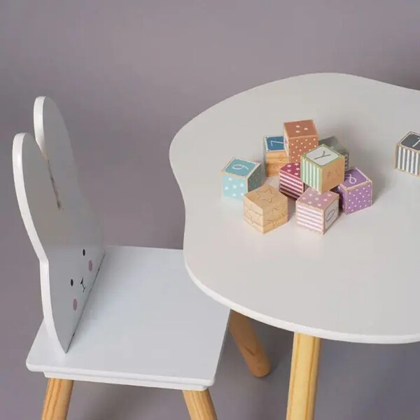 JaBaDaBaDo Stol Bunny er en fin og praktisk stol til børneværelset. Stolens ryg forestiller en sød kanin med kaninører, der stikker op. Stolen kan også anvendes som et lille sidebord eller sengebord til godnatlæsningen. Stolen er fremstillet af træ og siddehøjden er 27 cm.