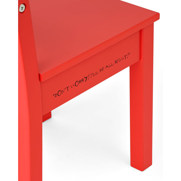 Stolen er fremstillet i FSC-certificeret træ og har på den ene side af sædet Pippis opmuntrende ord trykt, mens den anden side prydes af hendes velkendte silhuet — en hyldest til hendes dristige og selvstændige ånd. Ryglænet er dekoreret med et legende ternet mønster, inspireret af illustrationerne fra Pippis verden.