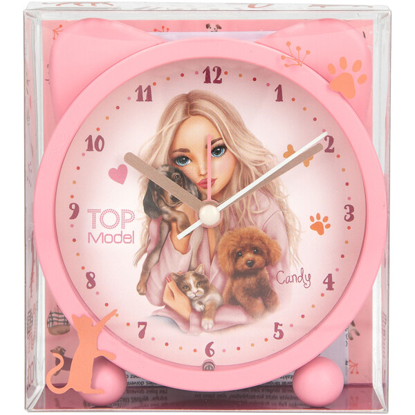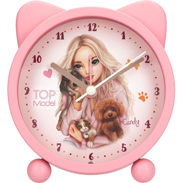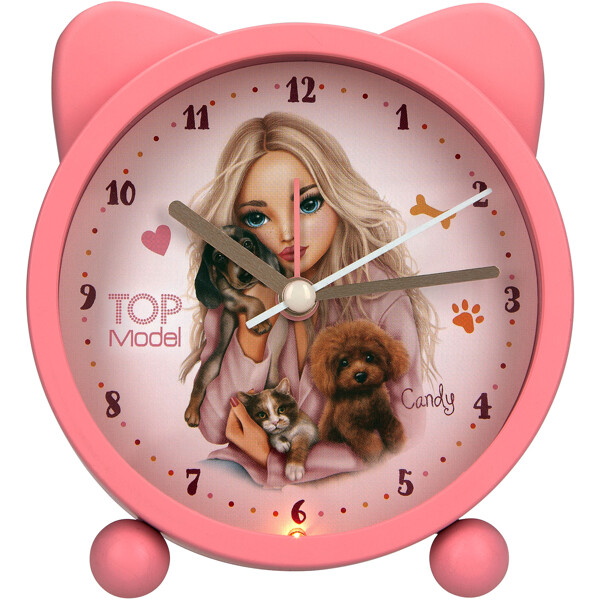 Fin vækkeur fra TOPModel-serien FUR EVER FRIENDS i smuk lyserød med søde ører og motiv af TOPModellen Candy med to hunde og en kat i favnen. Vækkeuret er stille bortset fra når det ringer selvfølgelig og har desuden en praktisk lysfunktion.