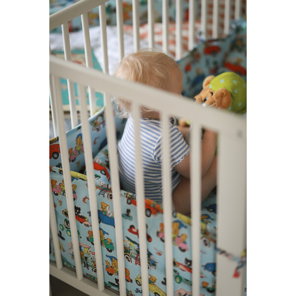 Gør sovepladsen for dit barn til et trygt og hyggeligt sted med en sengebeskytter med Bamse-motiv. Beskytteren bindes nemt rundt om sengens tremmer.
