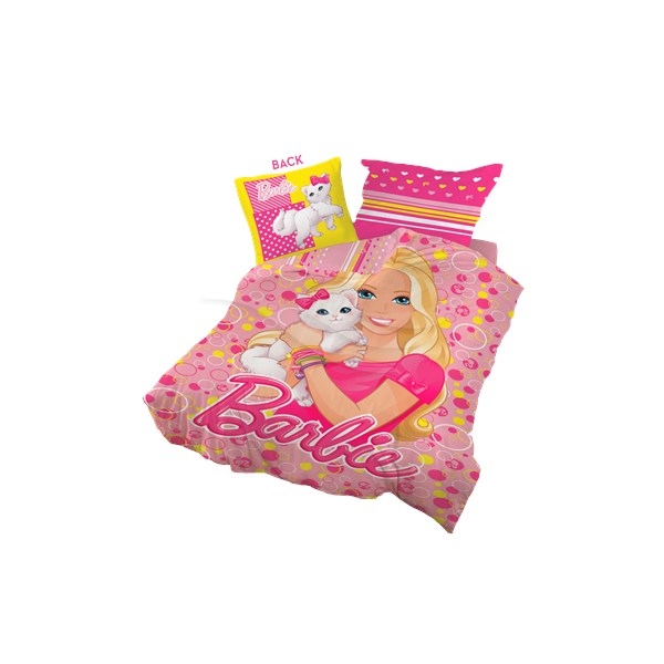 Barbie Sæt Sengetøj er et super flot sæt sengetøj med Barbie! Sov godt og drøm søde Barbie-drømme med dette fine sengesæt af 100% bomuld!