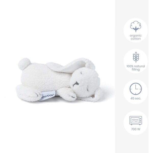 Doomoo Varmepude Krammedyr Kanin hjælper barnet med at falde til ro. Den lindrer mavekramper, kolik og andre maverelaterede problemer – samtidig med at den er et krammedyr. Varmepuden har en lille inderpude fyldt med beroligende lavendel og raps, som nemt opvarmes i mikroovnen.Varmepude Krammedyr Kanin har en blød inderpude, der er fyldt med økologisk raps og lavendel. Inderpuden opvarmes i mikrobølgeovnen, placeres i krammedyrets betræk og lægges derefter på babyens mave. Varmepuden hjælper maven med at slappe af, så lommer med indespærret luft, der forårsager kramperne, mindskes på en naturlig måde. Den spreder samtidig en behagelig duft, der beroliger selv den mest urolige lille baby. Varmepude Krammedyr Kanin kan også bruges til at varme en kold seng, barnevogn eller autostol op.Varmen, duften, trygheden og det søde design gør hurtigt Varmepude Krammedyr Kanin til et favoritkrammedyr, som børnene ikke kan undvære.Vigtigt!– Opvarmning i mikrobølgeovn. Varm den indre pude ved 700W. Kontroller temperaturen efter 45 sekunder og varm i yderligere 15 sekunder, indtil puden er tilpas varm. Kontroller nøje, at den ikke er for varm!– Læs instruktionerne, der følger med produktet, samt advarselsteksten før brug.Fakta Doomoo Varmepude Krammedyr Kanin– Varmepude og krammedyr– Lindrer mavekramper, kolik og luft i maven– Duft af lavendel, der beroliger barnet– Kan bruges til at varme seng, autostol og barnevogn opMateriale: Betræk i 92% bomuld, 8% polyester.Fyld: Raps og lavendel.Vask: Betrækket kan vaskes i maskine ved 30 grader