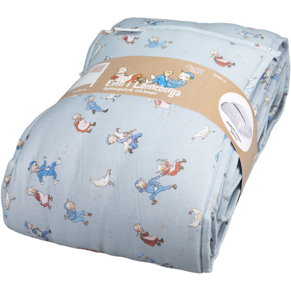 Gør sovepladsen for dit barn til et trygt og hyggeligt sted med en sengebeskytter med motiv fra Lotta fra Bråkmakargatan. Beskytteren bindes nemt rundt om sengens tremmer. Yderstoffet er i bomuld, og fyldet er af polyester i høj kvalitet, som giver god ventilation og gode vaskeegenskaber. Sengebeskytteren passer til de fleste senge.