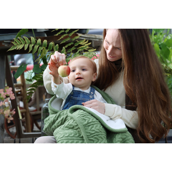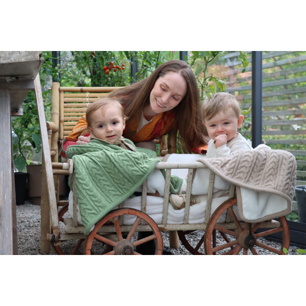 Med Cuddly-tæppet fra Vinter & Bloom kan dit barn sove varmt og trygt i sin seng eller barnevogn. Cuddly har en mønsterstrikket forside og en bagside af blød koralfleece.