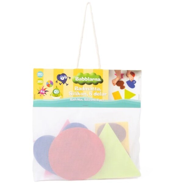 Babblarna Mini Bad/brusemåtte 6-pak er små badekarsmåtter, der består af smarte skridsikre måtter. Disse passer både til badekar og brusekabine. Skridsikrene fastgøres nemt ved hjælp af sugekopper. Indeholder seks stykker skridsikre måtter. Gør barnets bad & brusebad til en sjov oplevelse, der forener nytte med fornøjelse. Mens barnet bliver rent, kan I øve sproget med hjælp fra Babblarna.