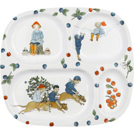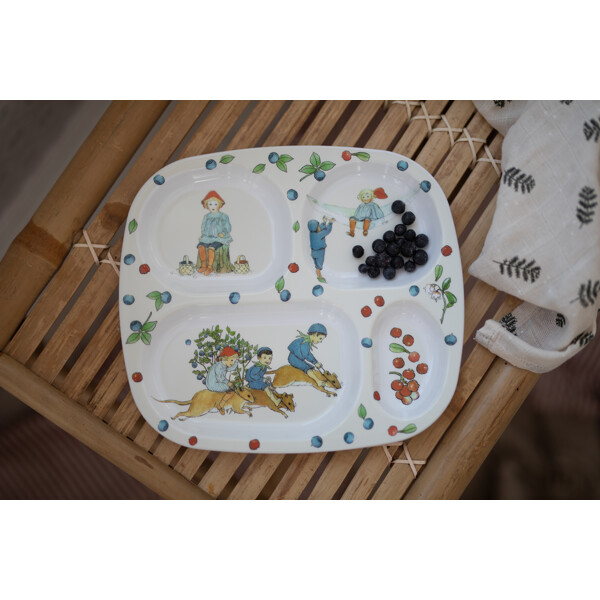 Praktisk tallerken med forskellige rum, der passer perfekt til barnets første måltider.