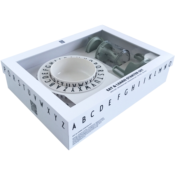 Design Letters Eat & Learn Starter Set er en barnservis med bokstäver och fina tillbehör i fina färger. Barnservisen kan følge med barnet fra de første smakportionerna och første drycken tills dess at barnet kan äta och dricka på egen hand.