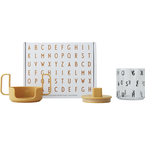 Design Letters Grow With Your Glass Beige kan användas fra lite mindre barn till äldre tack vare de smarta tillbehören som följer med. Använd glaset tillsammans med handtaget och det smarta piplocket och plocka sedan bort dessa i takt med at barnet växer. Glaset er tillverkat i tritan och har ett mönster av bokstäver. Glaset er fritt fra BPA och BPS.