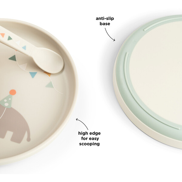 Lad dit barn nyde et måltid fra denne søde og praktiske Foodie-tallerken. Det legende tryk vil glæde ved hvert måltid. Den høje kant hjælper dit barn med at skovle maden op, mens den praktiske skridsikre bund sørger for, at tallerkenen bliver på plads.