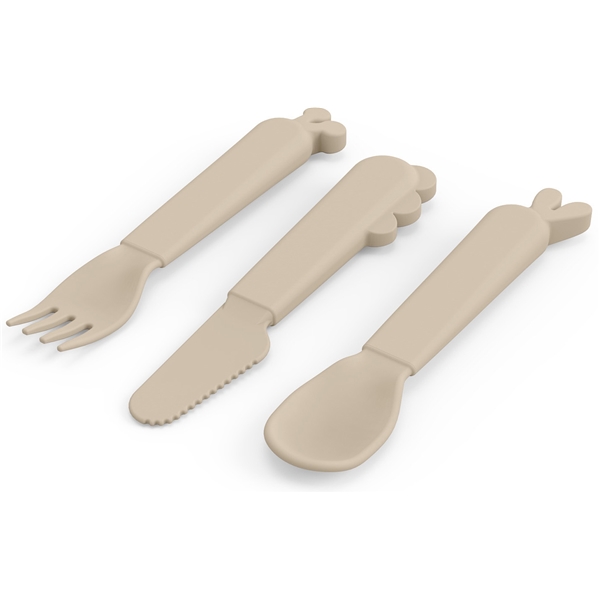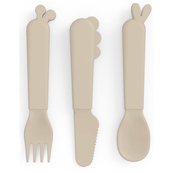 Done by Deer Kiddish Cutlery Set har afrundede former, som gør det sikkert for små børn at øve sig i at spise selv. Bestikket er velproportioneret til små hænder og nøje gennemtestet af børn.