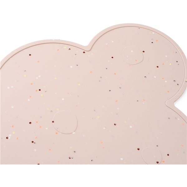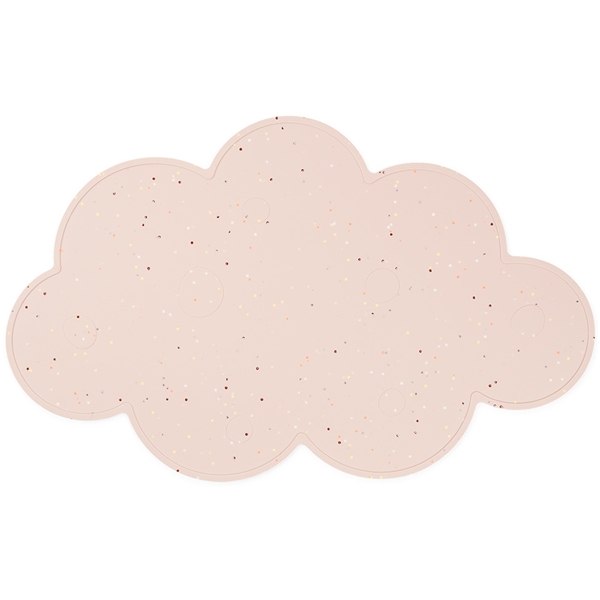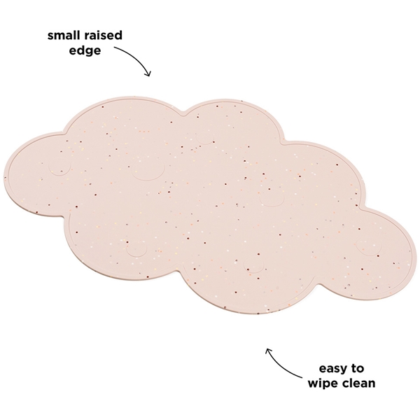Sød skyformet dækkeserviet i en blød farve. Motivet er pyntet med sjov konfetti, der gør dækkeservietten klar til både hverdag og fest. Dækkeservietten har en lille hævet kant for at stoppe spildte væsker.