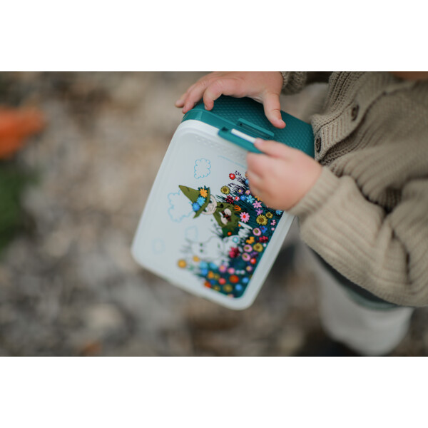 Forfatterinden og kunstneren Tove Jansson elskede havet og naturen. Næsten alle hendes fortællinger og illustrationer foregår i naturen. Madkassernes motiver skildrer Mumifamiliens eventyr. Produktet er fremstillet i en meget fin fabrik, der er certificeret af BSCI for gode og sikre arbejdsforhold. Fabrikken er certificeret i henhold til kvalitetsstyringssystemet ISO 9001 for at sikre god håndtering af produkter, der skal anvendes med mad.