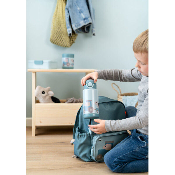 Gennemtænkte detaljer gør det nemt for de små at håndtere den på egen hånd: et trykknap-låg designet til små fingre, en sikker silikoneforsegling for at forhindre spild i rygsække og et praktisk bærehåndtag til livet på farten. Flasken holder drikkevarer præcis som din lille vil have dem – varme eller kolde – i op til seks timer, når du er ude og bevæge dig. Med plads til 340 ml er den den perfekte størrelse til at holde sig frisk, fra morgensnack til eftermiddagsleg.