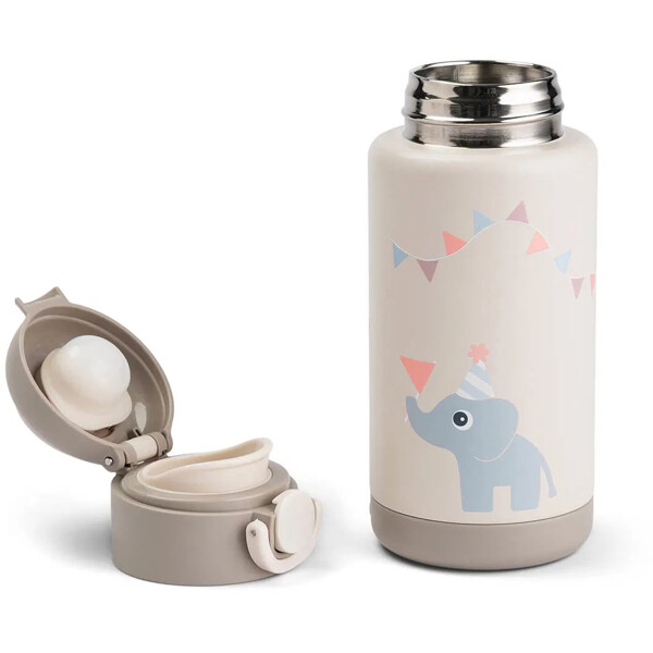 Gennemtænkte detaljer gør det nemt for de små at håndtere den på egen hånd: et trykknap-låg designet til små fingre, en sikker silikoneforsegling for at forhindre spild i rygsække og et praktisk bærehåndtag til livet på farten. Flasken holder drikkevarer præcis som din lille vil have dem – varme eller kolde – i op til seks timer, når du er ude og bevæge dig. Med plads til 340 ml er den den perfekte størrelse til at holde sig frisk, fra morgensnack til eftermiddagsleg.