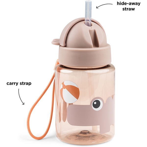 Flasken som er en god følgesvend til dit barns daglige aktiviteter. Den gennemsigtige flaske har et sammenklappeligt sugerør for nem drikning, med et låg der på en smart måde forhindrer spild, når den ikke er i brug. Små fingre får nemt fat i sugerøret, takket være de legesyge Croco-takker på låget.