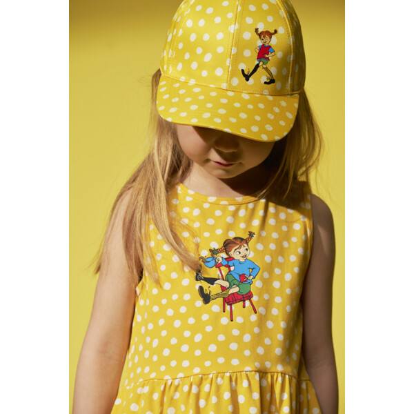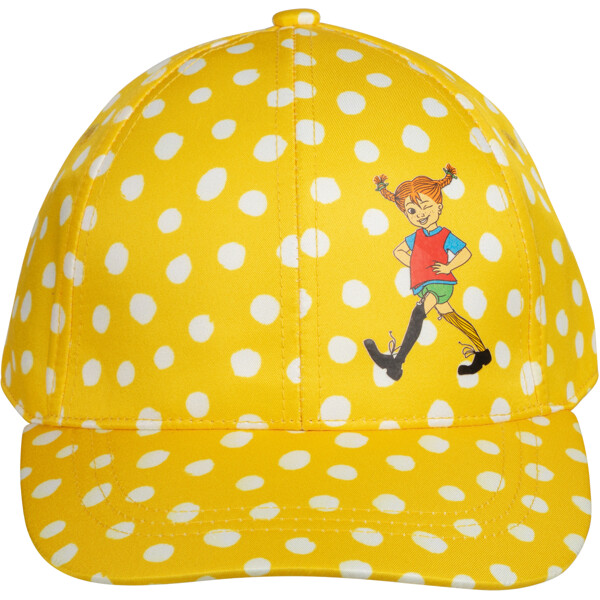 En klassisk Pippi kasket til børn. Med forbøjet skygge, solid front og et justerbart velcrobånd bagpå. Fremstillet i certificeret genanvendt polyester.