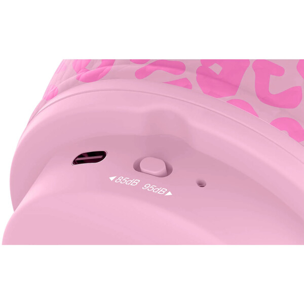 Trådløse hovedtelefoner til børn med to forskellige lydstyrkeindstillinger på 85 dB og 95 dB, for sikker lydstyrkebegrænsning i alle miljøer.