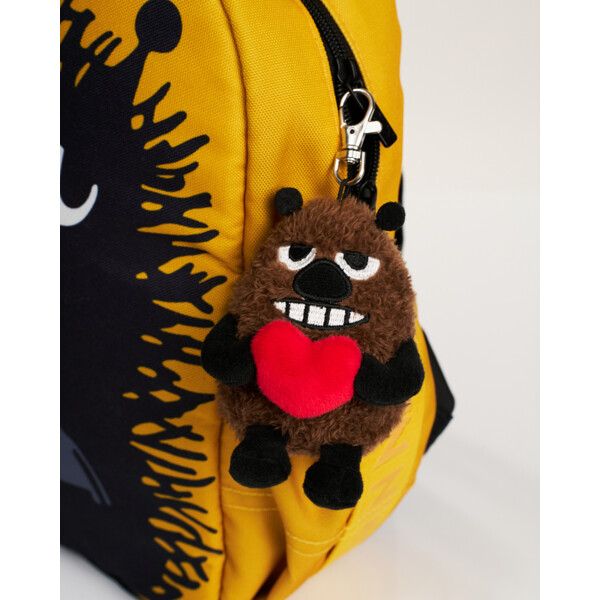 En taskedekoration eller plysdyr-nøglering fra Mumi, med Stinky som holder en lille hjertepude i favnen.